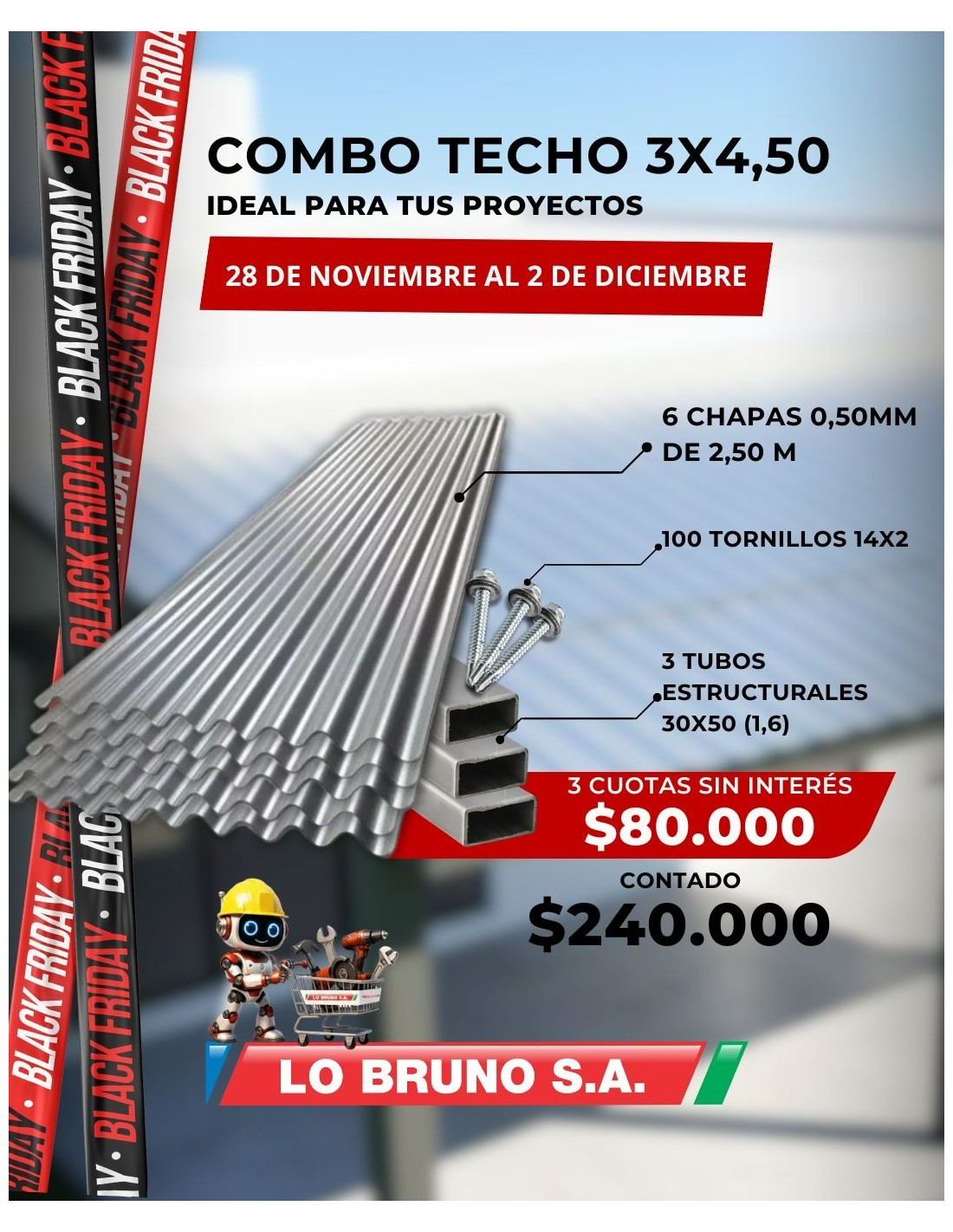 COMBO TECHO CHAPA 3 X 4.5M