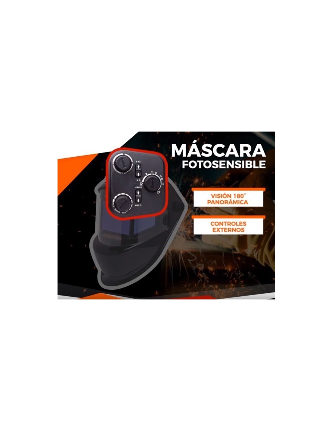 Máscara fotosensible de alimentación solar y visor panorámico 180º. Diseñada para todo tipo de trabajos de soldadura, están diseñadas para proteger ojos y cara de chispas, derrames y radiación peligrosa.