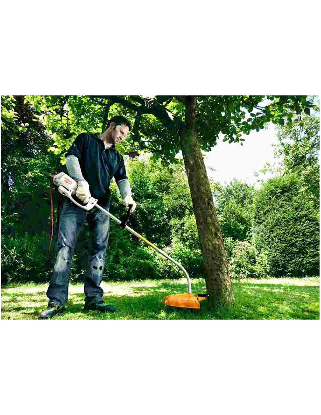 Robusto cortabordes eléctrico con cabezal de corte AutoCut C. Muy adecuado para recortar bordes y para trabajos de limpieza alrededor de árboles y en caminos difíciles. También es adecuado para cortar pequeñas superficies de césped.